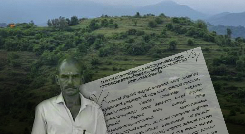 2025 ഒക്ടോബർ 15നാണ് കൃഷ്ണസ്വാമി തണ്ടപ്പേർ അക്കൗണ്ട് സർട്ടിഫിക്കറ്റിനായുള്ള അപേക്ഷ സമർപ്പിച്ചത്. അപേക്ഷയുടെ മാർജിനിൽ ആവശ്യമായ സ്ഥലം ഇല്ലെന്ന് 2018ലെ ആധാര പ്രകാരം മുഹമ്മദ് മാഹിൻ അലി എന്ന ആളുടെ പേരിൽ താലൂക്ക് ഓഫീസിൽ പെയിന്റിംഗ് ഉള്ളതാണെന്ന് രേഖപ്പെടുത്തി. അതേസമം, വില്ലേജ് ഓഫീസറെ കാണാൻ നിർദ്ദേശിച്ച് അപേക്ഷ 16 ന് കൃഷ്ണ സ്വാമിക്ക് മടക്കി കൊടുത്തു. രേഖകൾ പരിശോധിച്ചപ്പോൾ 25ലെ ആധാര പ്രകാരം വേലാത്താൾ മകന്റെ ഭാര്യ കമലത്തിന് കൈമാറിയ ഭൂമിക്ക് നാളിതുവരെ തണ്ടപ്പേർ നൽകിയിട്ടുമില്ല.