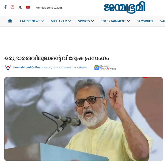 ഭാരതവിരുദ്ധന്റെ വിദ്വേഷപ്രസംഗം