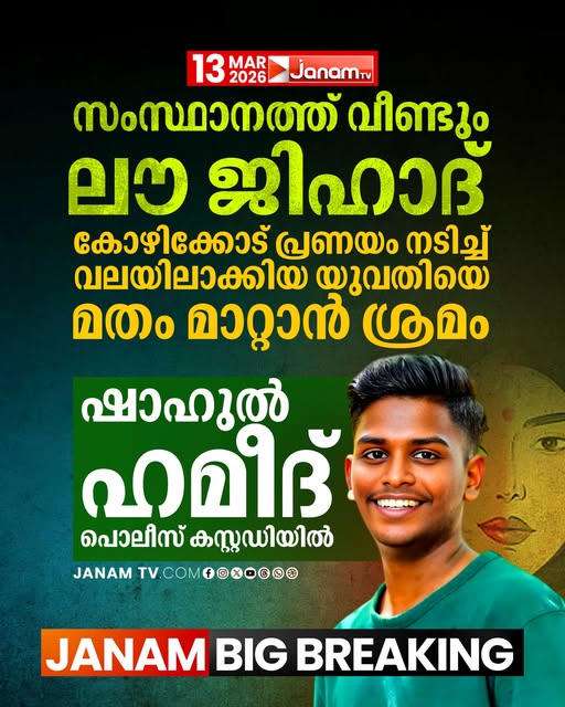 12. സംസ്ഥാനത്ത് വീണ്ടും ലൗ ജിഹാദെന്ന് ജനം ടിവി വാര്ത്ത. കോഴിക്കോട് കക്കാടംപൊയില് സ്വദേശി ഷാഹുല് ഹമീദ് എന്ന വ്യക്തിക്കെതിരേയാണ് ജനം ടിവി, ജന്മഭൂമി തുടങ്ങിയ മാധ്യമങ്ങള് വാര്ത്ത നല്കിയത്. അവരുടെ വാര്ത്തയനുസരിച്ച് 21 കാരിയെ ഷാഹുല് ഹമീദ് വിവാഹം കഴിച്ചു. ആ സമയത്ത് മതം മാറാന് പറഞ്ഞിരുന്നില്ല. പിന്നീട് മതംമാറണമെന്ന് പറഞ്ഞു. സാധ്യമല്ലെന്ന് പറഞ്ഞപ്പോള് ഇയാള് കടന്നുകളഞ്ഞു. മാത്രമല്ല, ഒരു ക്രൈസ്തപെണ്കുട്ടിയെയും വലയിലാക്കാന് ശ്രമിച്ചു. ഇത് ലൗ ജിഹാദിന് ഉദാഹരണമാണെന്നാണ് വാര്ത്തകള് പറയുന്നത്. (സംസ്ഥാനത്ത് വീണ്ടും ലൗ ജിഹാദ്, യുവതിയെ മതം മാറ്റാന് ശ്രമം: ഷാഹുല് ഹമീദ് കസ്റ്റഡിയില്, 13 മാര്ച്ച്, ജനം ടിവി).