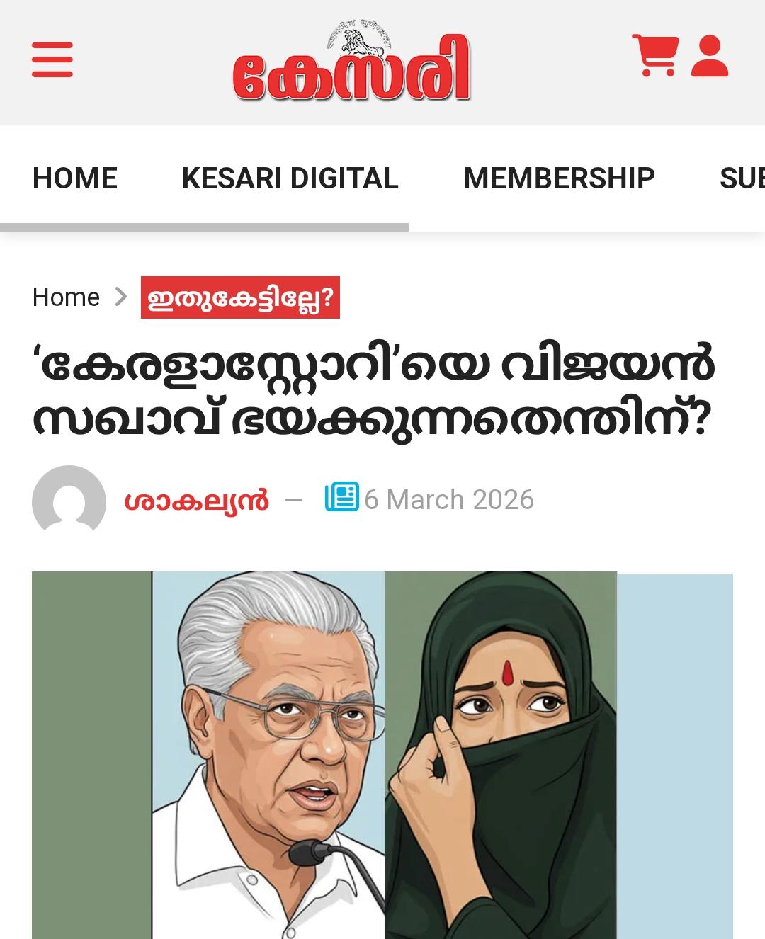 സിപിഎമ്മിന്റെ ഈ വിഷയത്തിലെ നിലപാടുകളെ വിമര്ശിച്ചു കൊണ്ട് കേസരി ലേഖനം പ്രസിദ്ധീകരിച്ചു. ‘കേരളാ സ്റ്റോറി’യെ വിജയന് സഖാവ് ഭയക്കുന്നതെന്തിന്? എന്നായിരുന്നു ശീര്ഷകം: