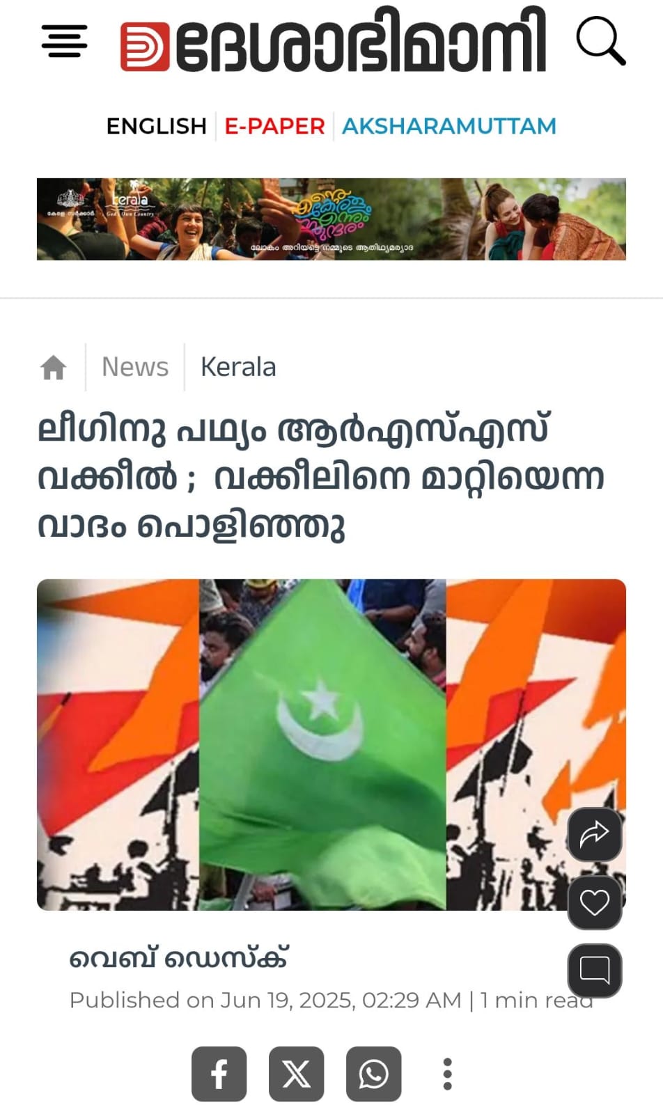 ലീഗിന് പഥ്യം ആർഎസ്എസ് വക്കീലെന്ന് ദേശാഭിമാനി