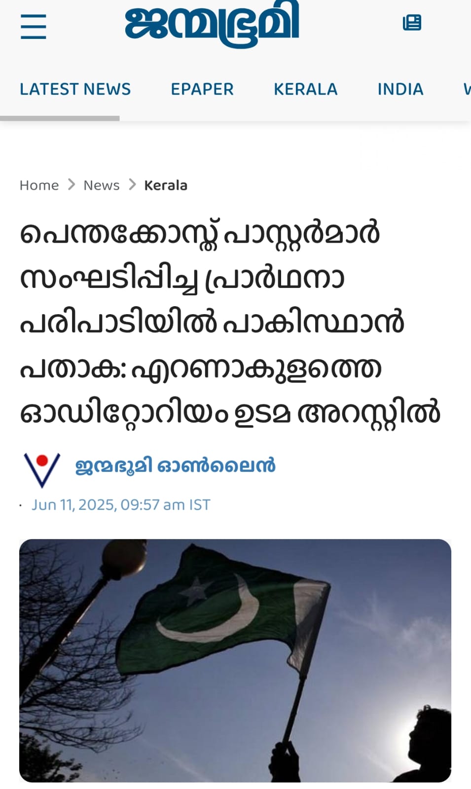 ജൂൺ 7ന് ഉദയംപേരൂരിൽ സകല രാജ്യങ്ങൾക്കും സമാധാനവും ക്ഷേമവും നേർന്നുകൊണ്ട് വിവിധ പ്രൊട്ടസ്റ്റന്റ് സഭകളിലെ പാസ്റ്റർമാർ ഒത്തു ചേർന്ന് ഉദയംപേരൂർ ജീസസ് ജനറേഷൻ ഓഡിറ്റോറിയത്തിൽ ഒരു പ്രാർത്ഥനായോഗം സംഘടിപ്പിച്ചു. 20 രാജ്യങ്ങളുടെ കൊടികൾ നിരത്തിവച്ചായിരുന്നു പരിപാടി. അതിലൊന്ന് പാകിസ്താന്റെതായിരുന്നു. സമൂഹമാധ്യമങ്ങളിൽ പ്രാർഥനയുടെയും കൊടികളുടെയും ദൃശ്യം കണ്ട് ബിജെപി നേതാവ് ശ്രീക്കുട്ടൻ പൊലീസിന് പരാതി നൽകി.