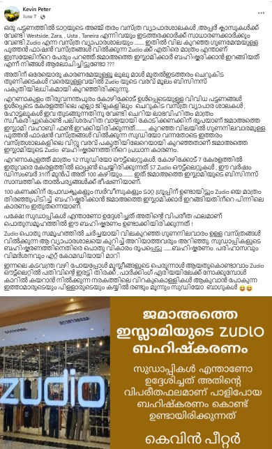 അടുത്ത ദിവസം മറുനാടൻ മലയാളിയുടെ എഡിറ്ററും ഉടമയുമായ സാജൻ സ്കറിയ ഫേസ്ബുക്കിൽ ഇങ്ങനെയൊരു പോസ്റ്റിട്ടു: ഇതുവരെ സൂഡിയോയിൽ കയറിയിട്ടില്ല. മൗദൂദികൾക്ക് കുരുപൊട്ടിയപ്പോഴാണ് ശ്രദ്ധിക്കുന്നത് തന്നെ. ഭീകരവാദികളെ തുരത്താൻ ഈ ബ്രാൻഡിന് പങ്കുണ്ടെങ്കിൽ പിന്നെ ഇവരെ തുണക്കാതിരിക്കാൻ പറ്റുമോ? ഇനി ഖാദിയല്ലാത്ത വല്ല തുണിയും വാങ്ങുന്നെങ്കിൽ സൂഡിയോയിൽ നിന്ന് മാത്രം (ജൂൺ 7, സാജൻ സ്കറിയ/ ഫേസ്ബുക്ക്).