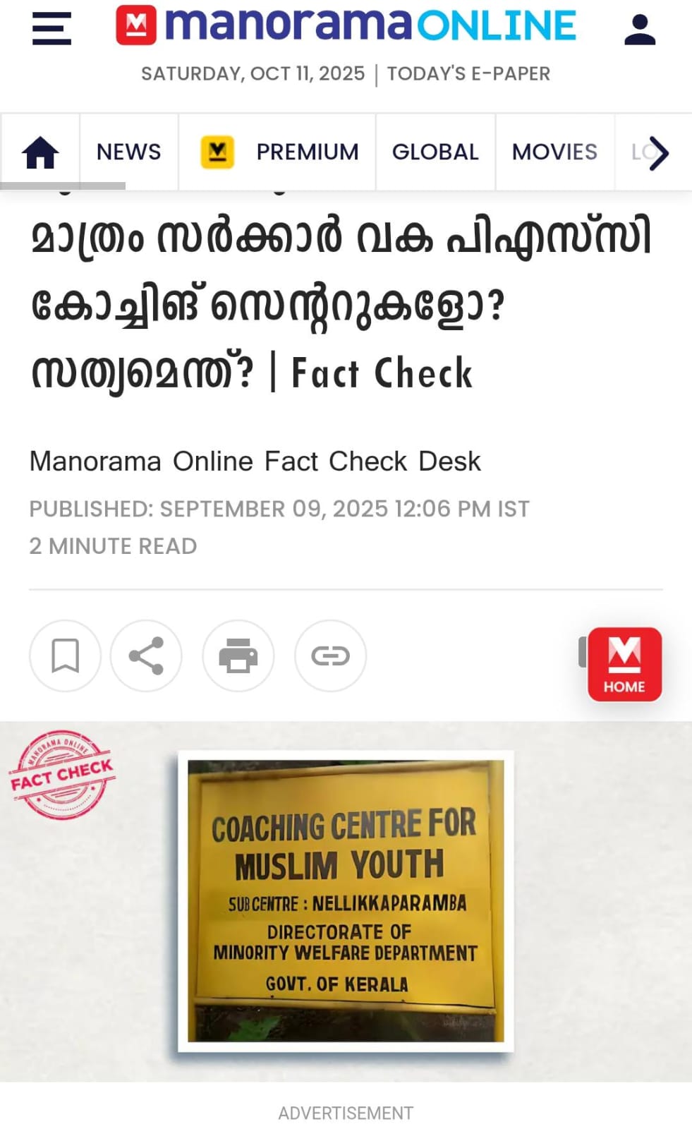 മുസ്ലീം സമുദായത്തിന് മാത്രമായി സംസ്ഥാന സർക്കാർ പിഎസ്സി കോച്ചിങ് സെന്ററുകൾ നടത്തുന്നതായി ഒരു പ്രചാരണം സമൂഹമാധ്യമങ്ങളിൽ ജൂൺ പകുതിയോടെ തുടങ്ങി. നെല്ലിക്കപ്പറമ്പ് എന്ന സ്ഥലത്ത് ന്യൂനപക്ഷ വകുപ്പിന്റെ കീഴിൽ മുസ്ലീം യുവാക്കൾക്കായി കോച്ചിങ് സെന്റർ നടത്തുന്നുണ്ടെന്ന് സൂചിപ്പിക്കുന്ന ഒരു ബോർഡിന്റെ ചിത്രം ഉൾപ്പെടെയാണ് പ്രചാരണം. ഹിന്ദുക്കളുടെയും ക്രൈസ്തവരുടെയും നികുതിപ്പണം വാങ്ങി മുസ്ലീങ്ങൾക്ക് സഹായം നൽകുന്നുവെന്നാണ് പ്രചാരണത്തിന്റെ കാതൽ.