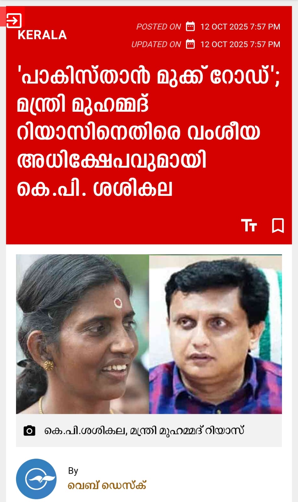 ആര്എസ്എസ് വിരോധത്തിന്റെ കാര്യത്തില് കമ്മ്യൂണിസ്റ്റുകാരുടെയും പിണറായി വിജയന്റെയും ശിവന്കുട്ടിയുടേയും ബിനോയ് വിശ്വത്തിന്റെയും അടുത്തെത്താന് കോണ്ഗ്രസും ലീഗും ജമാഅത്തെ ഇസ്ലാമിയും ആയിരം കൊല്ലം തപസ്സിരുന്നാലും കഴിയില്ല. ഓരോ സഖാവും വാര്ത്തടുക്കപ്പെട്ടിട്ടുള്ളത് ആര്എസ്എസ് ഉയര്ത്തുന്ന വര്ഗ്ഗീയ രാഷ്ട്രീയത്തിന്റെ ശവക്കല്ലറയുടെ മുകളിലാണ് (പി.എം ശ്രീയും സിബിഎസ്ഇ സ്കൂളുകളും ലീഗും!/ ഒക്ടോബര് 26, ഫേസ്ബുക്ക് /കെ.ടി ജലീല്).