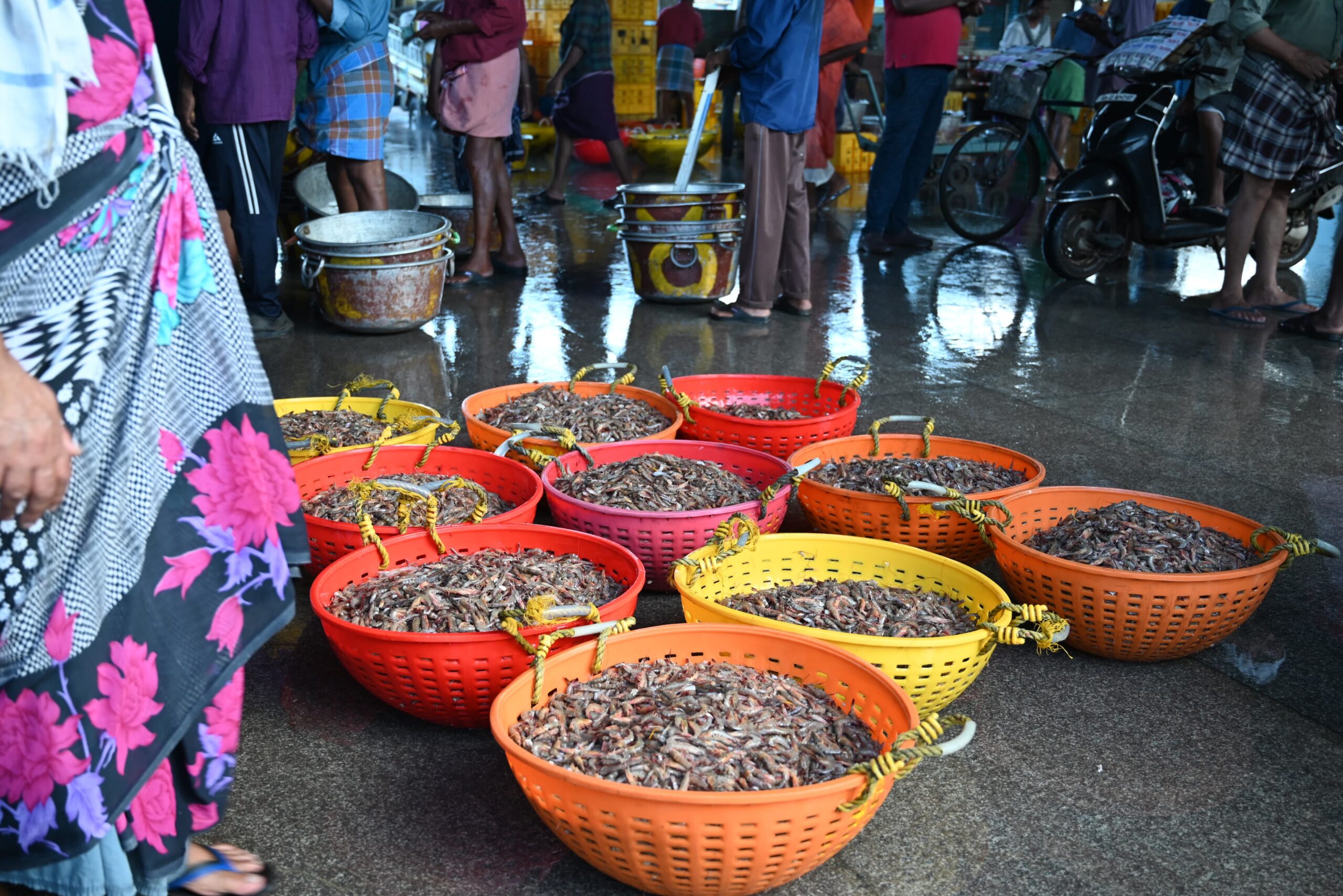 “ബോട്ടുകാർ എടുത്ത് കൊണ്ട് വന്നാൽ ആർക്കും വേണ്ടാ. അവർക്കും നഷ്ടം, മീറ്റെടുക്കുന്ന കമ്പനിക്കാരും 100 രൂപ 50 രൂപ ഒക്കെ കുറച്ചാണ് ഈ വർഷം എടുത്തത്. നമുക്കത് മൊതലാവത്തില്ല, കമ്പനിക്കാര് പറയുന്നത് ഒന്നും കേറി പോകുന്നില്ലെന്നാണ്. വില ഒരുപാട് താഴ്ത്തിയാ കൊണ്ട് ഇട്ടേക്കുന്നത്. പീലിങ് ചെയ്താൽ മൊതലാവത്തില്ല. കൊഞ്ച് ഉരിക്കുന്നവർക്ക് കൂലി കൊടുക്കണം. ഐസ്, അതുപോലെ ഷെഡിൽ സഹായത്തിന് നിക്കുന്ന പിള്ളേർക്ക് കൂലി കൊടുക്കണം. ഒരുപാട് പരാജയത്തിലാണ് പണി ഇപ്പോ നടന്നുകൊണ്ടിരിക്കുന്നത്.” ഇരുപത്തേഴോളം സ്ത്രീകളും മൂന്ന് സഹായികളും ജോലി ചെയ്യുന്നുണ്ട് നിർമല ദാസന്റെ നഥാൻ പീലിങ് ഷെഡിൽ.