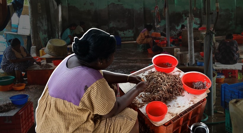 മുക്താഭായിയെ അന്വേഷിച്ച് വീട്ടിലെത്തുമ്പോൾ വീടിന്റെ വരാന്തയിൽ മുക്താഭായിക്കൊപ്പം സംസാരിച്ചുകൊണ്ടിരിക്കുകയായിരുന്നു ശ്രീദേവിയും ഗിരിജയും. ചെമ്മീൻ പീലിങ് ഷെഡിൽ ജോലി ചെയ്യുന്നവരാണ് മൂവരും. “ഞങ്ങളൊക്കെ ചത്ത് ജീവിക്കുവാ മോളെ. കലണ്ടറിൽ പോർട്ട് എന്ന് തുറക്കുമെന്ന് നോക്കി ഇരിക്കുകയായിരുന്നു. പോർട്ട് തുറന്നു കഴിഞ്ഞാ ഞങ്ങടെ അവസ്ഥ എന്താവും എന്നറിയില്ല, ഞങ്ങൾ പണി ചെയ്യുന്നവര് അങ്ങോട്ടും ഇങ്ങോട്ടും ഫോൺ വിളിച്ചു ചോദിക്കുമായിരുന്നു. ഇന്നും മൂന്ന് പേര് വിളിച്ച് ഡേയ്, പണി കാണുമോടെ നമുക്ക് എന്ന് ചോദിച്ചു. ആധിയാ മോളെ.” ജൂലായ് 31ന് 52 ദിവസം നീണ്ട് നിന്ന ട്രോളിങ് നിരോധനം അവസാനിച്ച് യന്ത്രവത്കൃത ബോട്ടുകൾ മത്സ്യബന്ധനത്തിന് പോയി തുടങ്ങുകയും ഹാർബറുകൾ പ്രവർത്തിച്ച് തുടങ്ങുകയും ചെയ്യുമ്പോൾ തങ്ങൾക്ക് ചെമ്മീൻ പീലിങ് കാണുമോയെന്നുള്ള ആശങ്കയായിരുന്നു ആ സ്ത്രീകളുടെ വാക്കുകളിൽ. മുക്തഭായിയേയും ശ്രീദേവിയേയും ഗിരിജയേയും പോലെ ആയിരക്കണക്കിന് സ്ത്രീ തൊഴിലാളികളാണ് കൊല്ലം ജില്ലയിലെ ശക്തികുളങ്ങര-നീണ്ടകര തീരദേശ മേഖലയിൽ പ്രവർത്തിക്കുന്ന ചെമ്മീൻ പീലിങ് ഷെഡുകളിൽ ജോലി ചെയ്യുന്നത്.