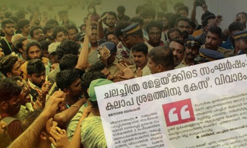 | December 16, 2022അന്താരാഷ്ട്ര ചലച്ചിത്രമേളയിൽ പ്രതിഷേധിച്ചവർക്കെതിരെ പൊലീസ് കലാപശ്രമത്തിന് കേസെടുത്തിരിക്കുകയാണ്. ‘നൻപകൽ നേരത്ത് മയക്കം’ എന്ന സിനിമയ്ക്ക് മുൻകൂട്ടി ബുക്ക് ചെയ്തിട്ടും സീറ്റ്
