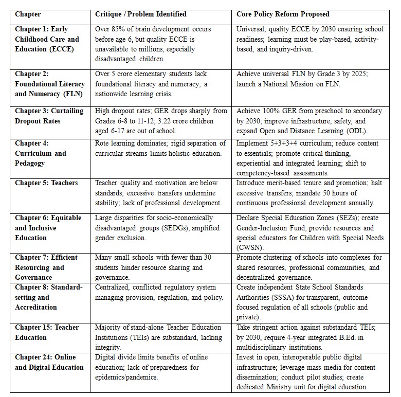 ദേശീയ വിദ്യാഭ്യസ നയത്തിന് മുന്നേ നടന്ന കേരളം, ഇന്ത്യയിലെ ഏറ്റവും മികച്ച വിദ്യാഭ്യാസ നിലവാരമുള്ള സംസ്ഥാനങ്ങളിലൊന്നായി കണക്കാക്കപ്പെടുന്ന കേരളം, 2020 ലെ ദേശീയ വിദ്യാഭ്യാസ നയം (NEP) എടുത്തുകാണിച്ച വെല്ലുവിളികളെ നേരിടുന്നതിൽ ഗണ്യമായ പുരോഗതി കൈവരിച്ചിട്ടുണ്ട്. എങ്കിലും സംസ്ഥാനം ഇപ്പോഴും നിരവധി വെല്ലുവിളികളിലൂടെ കടന്നുപോകുകയാണ്. 2020 ലെ NEP യിലെ ഓരോ അധ്യായത്തിലെയും വിമർശനങ്ങളുമായും നിർദ്ദിഷ്ട പരിഷ്കാരങ്ങളുമായും താരതമ്യപ്പെടുത്തുമ്പോൾ കേരളത്തിന്റെ അവസ്ഥ എന്താണെന്ന് നോക്കാം.